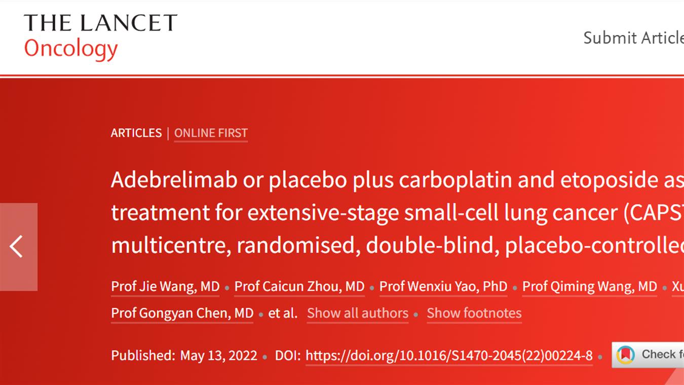 利来卡瑞利珠单抗联合阿帕替尼最新研究成果荣登《柳叶刀·肿瘤》